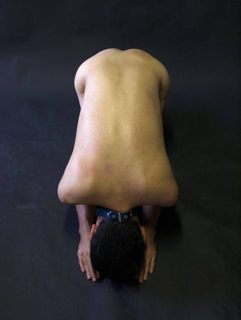 犬奴隷調教の際は、首輪をはめ四つん這いにさせる。