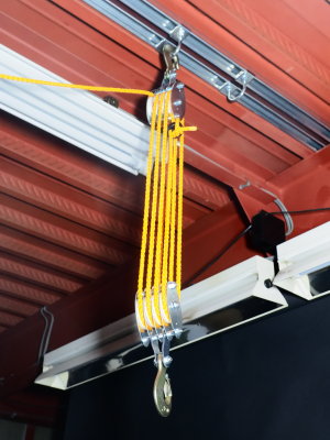 200kgまで吊れるロープホイストがあるから、簡単・安心だぜ。